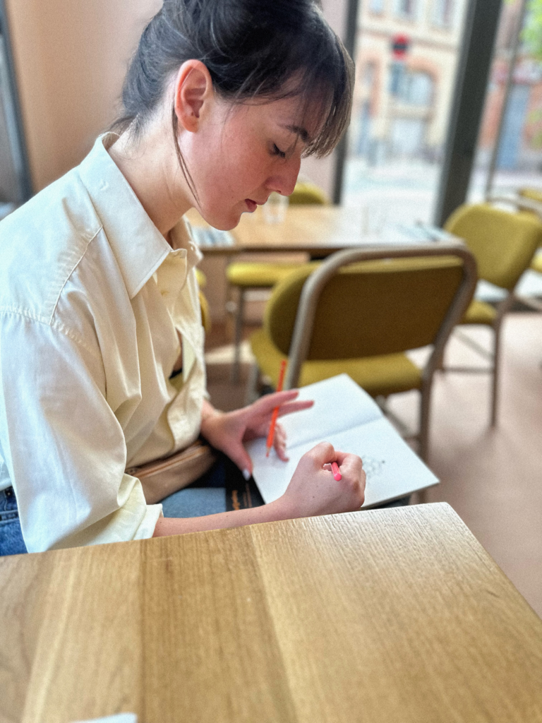 Pâtissière et cuisinière depuis 2013, je croque aujourd’hui les détails qui composent un lieu, un espace de travail ou un instant de partage. Ces illustrations sont des portraits dérivés : sans visage, ils racontent les personnes à travers les cuisines qu’elles habitent, les objets qu’elles manipulent, les gestes qu’on devine.